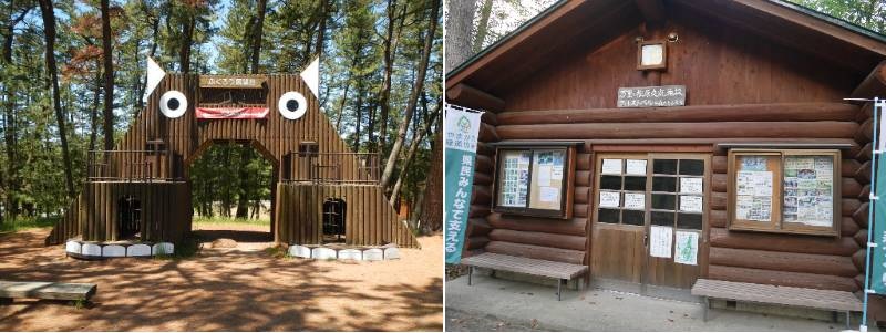 「よちよち砦」という小さなお子様向けの遊具や「ちびっこ広場」もある為、まだ小さなお子様のいるご家庭でも楽しんでいただけます。 また、園内には約2,200mのクロスカントリーコースも設定されており、コースの一部には走りやすいように足腰に負担少ないマットが敷かれている為、ウォーキング、ジョギングに最適です。