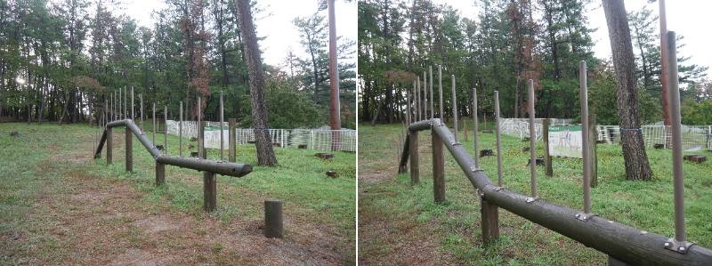丸太アジリティコースとは、犬のアジリティトレーニングで使用される障害物の一つで、丸太の上を走ったり、飛び越えたりします。アジリティは、犬と飼い主が協力してハードルやトンネルなどの障害物をクリアしていくドッグスポーツです。丸太は、犬のバランス感覚や敏捷性を養うために使われます。バランスを取りながら丸太の上を走る練習です。丸太を飛び越えることで、瞬発力とジャンプ力を養います。ハードル、トンネル、シーソー、スラロームなど、他の障害物と組み合わせてコースが構成されます。