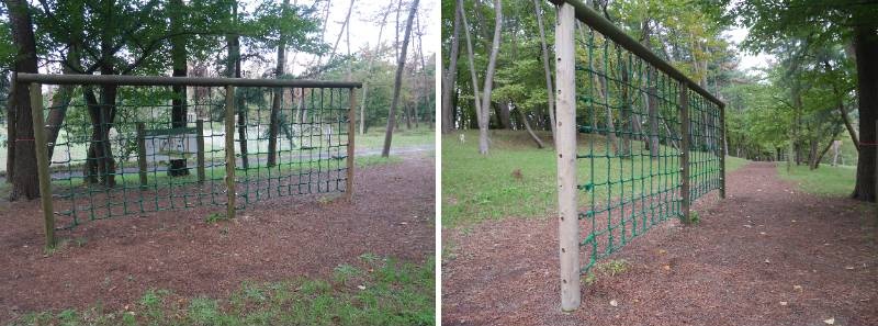 「アスレチックネット渡り」とは、ネットの張られたコースを渡るアスレチック遊具の一種で、公園やテーマパークなどで多く見られます。バランス感覚や全身の筋肉を使いながら、次のポイントへ移動するアトラクションです。ネットに手や足をかけたり、ぶら下がったりしながら進みます。全身運動になり、バランス感覚や体幹を鍛えることができます。素材は木製のものが多いです。フィールドアスレチック施設に設置されていることが多いです。