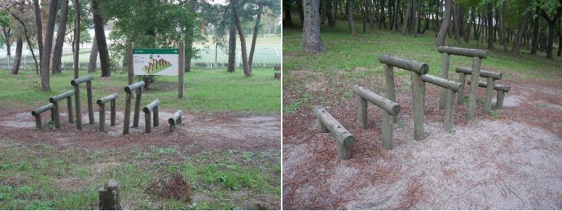 遊具の「ステップ丸太」は、丸い木(丸太)を横向きに並べ、段差を設けて子どもが昇り降りして遊べるようにした遊具です。一本の丸太を水平に置いたり、複数本を段差状にしたりして、またがったり飛び越えたり、登ったりといった多様な遊び方ができます。丸太を土台に固定するか、複数本を段差になるように並べたものです。バランス感覚や脚力、運動能力の発達を促すことを目的としています。