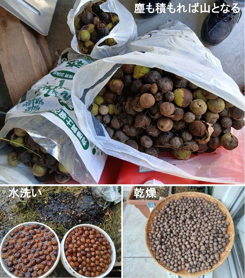 「塵も積もれば山となる」と云う諺があります。毎朝欠かさず出かけるウォーキングで、8月の末から9月の末まで、間違えなく胡桃が拾えます。それが一か月たちますと、ご覧のような量になります。拾った胡桃は、外皮が腐るのを待ち綺麗に洗って天日で乾燥すれば、何年でも保存が出来ます。胡桃には、他のナッツ類にない重要な栄養素があります。胡桃はオメガ3脂肪酸、ビタミン、ミネラル、食物繊維が豊富なスーパーフードで、心血管疾患予防、認知機能の維持、生活習慣病リスクの低減、美容効果が期待されます。特に、豊富なオメガ3脂肪酸やポリフェノールは体の酸化を防ぎ、脳の健康や若々しさの維持に貢献します。また、低糖質・グルテンフリーであり、ダイエット中の満腹感や腸内環境の改善にも役立ちます。https://www.ji3.biz