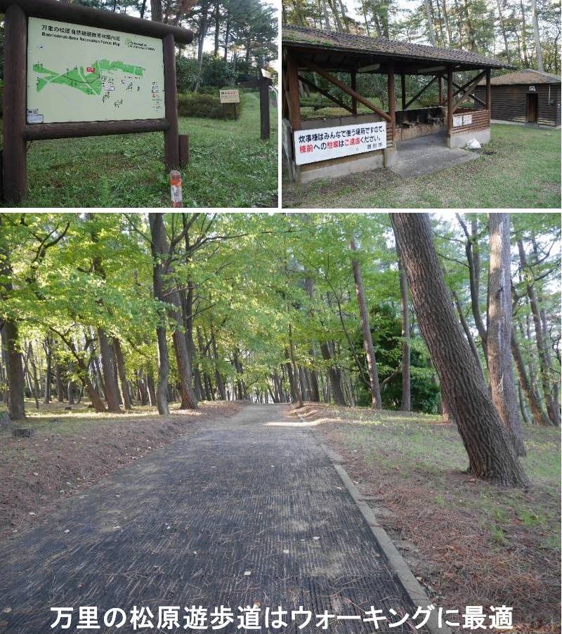 万里の松原自然観察教育林は、酒田市街地に位置し、主にクロマツで形成された森林は、国道7号線を挟み南側の「松陵(しょうりょう)地区」、北側の「新林(しんばやし)地区」に分かれています。エリアの中心となる「松陵地区」周辺には、小中学校、高校や運動公園等の公共施設があり、歩道や遊具の整備がされていますので、学生達の自然学習や遊び場として、また平坦地であることから子供から大人までの散策やジョギングの場として近隣市民に親しまれています。新林地区の施設は遊歩道がメインとなっており、静かな松林を楽しむことができます。https://www.ji3.biz