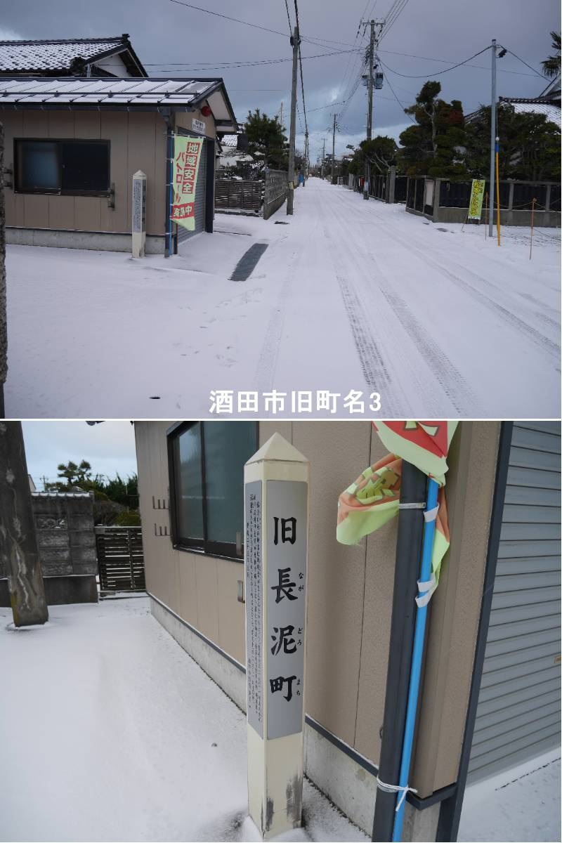 【長泥町】亀ヶ崎墓地管理事務所の近くに標柱があります。酒田市の旧長泥町は、現在の亀ヶ崎三丁目・四丁目周辺にあたる、江戸時代に形成された酒田の城下町の一部で、最上地方から連れてきた家臣団が住んだことに由来する地名とされ、明治期には「鵜渡川原村」の一部でしたが、後に酒田町に合併し、現在の町名に変わりましたが、その歴史的な地名が残っています。長泥町は、元禄期の城下町図にも描かれる亀ヶ崎城下の町の一つでした。最上地方から来た家臣たちが、故郷(長泥)にちなんで名付けたと言われています。明治9年(1876年)には鵜渡川原村となり、昭和4年(1929年)に酒田町と合併しました。つまり、旧長泥町は、現在の亀ヶ崎地区の一部に存在した歴史的な町名で、酒田の発展と共に歩んできた地名の一つです。https://www.ji3.biz