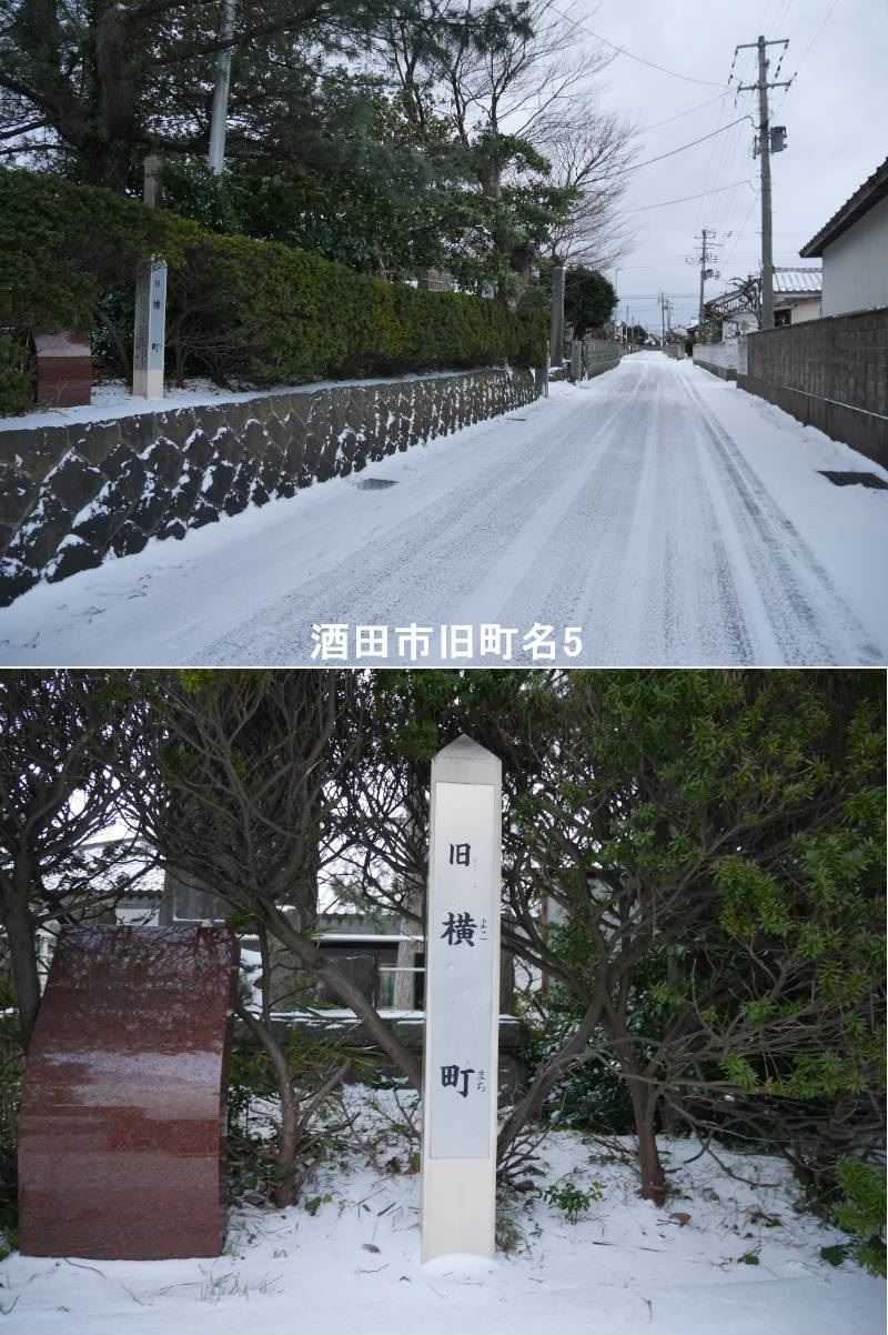 【横町】亀ヶ崎保育園の近くに標柱があります。城下町は内町組と米屋町組に分かれ、酒田町組と区別されていました。上杉氏支配の時に土塁や堀を築き、東禅寺分と呼びました。最上氏になり志村伊豆守は家臣を鵜渡川原村に住まわせました。出身地から町名をつけた、武家のたたずまいが残る町並が残ります。横町は、最上町、長泥町、袋町に対し横にあったので付いた名です。酒田市亀ヶ崎城は、山形県酒田市にあった平山城で、元は東禅寺城と呼ばれ、武藤氏(大宝寺氏)が築いた中世の拠点です。最上氏の時代に亀ヶ崎城と改名され、庄内藩の支城として幕末まで存続しましたが、現在は酒田東高校の敷地となり、土塁の一部が残るのみです。庄内藩にとって重要な拠点であり、酒田湊の支配にも関わりました。https://www.ji3.biz
