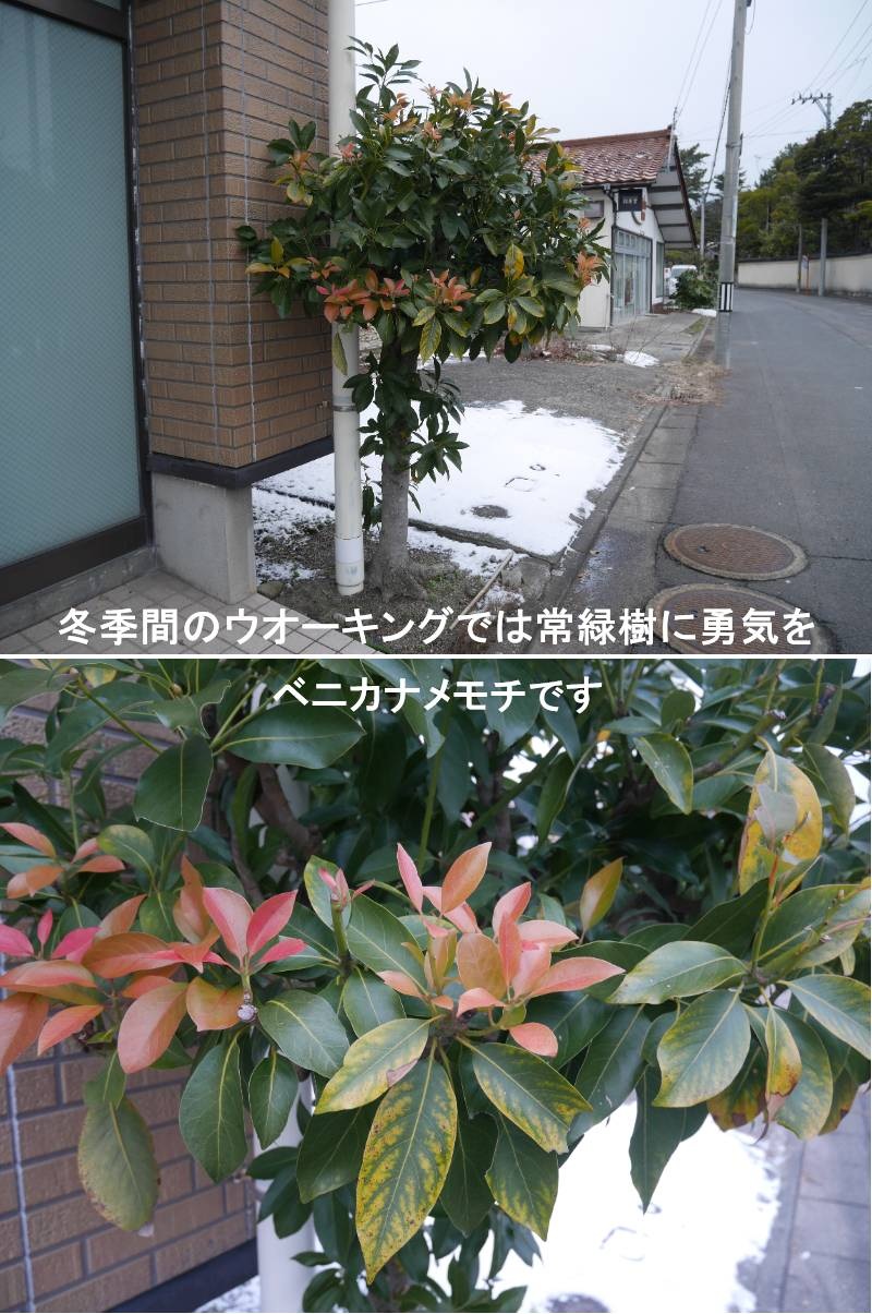 白く寒い季節が終わりを迎えます。明日から三月です。緑の季節が始まります。待ちに待った春です。ウオーキングも一段と楽しくなります。今年も沢山の植物と出会えると思います。新たにカメラに広角レンズを追加しました。冬季間に出会える植物は常緑樹に限られていました。それでも、白い世界で緑を見るとホットしますし、目に優しい色です。ベニカナメモチに勇気を頂いた寒い季節でした。ベニカナメモチは、新芽の紅色が美しく、刈り込みに強く目隠しの調整がしやすいため、生垣などによく使われています。枯れにくく生長も速いので、剪定に失敗したとしても、すぐにきれいな形に仕立て直すことができます。https://www.ji3.biz