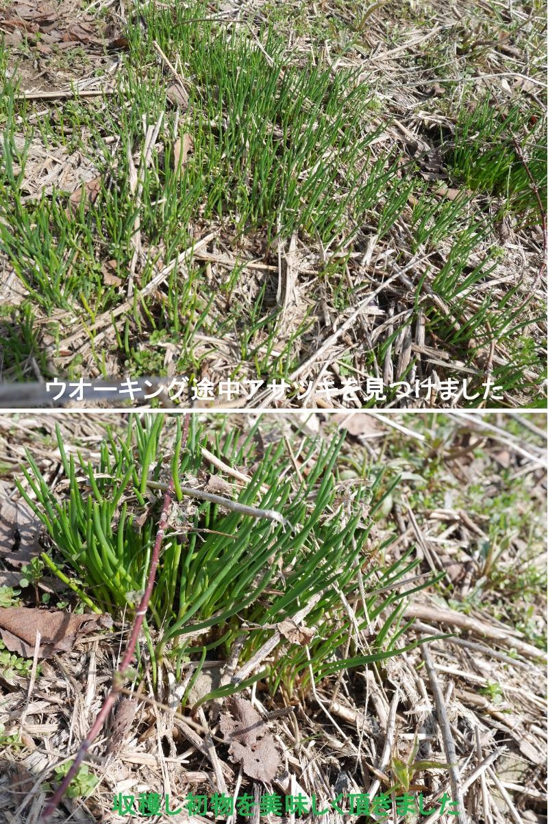 ウオーキング途中アサツキを見つけましたので、帰宅後改めて道具を持って収穫に出かけました。新鮮な春の恵を美味しく頂きました。あさつきは山などに広く自生していた山菜の一種で、ネギとは種類が異なります。辛味が強く、香りがよいのが特徴です。漢字では「浅葱」と表しますが、これはあさつきがネギよりも浅い緑色をしていることが由来です。山形県では伝統野菜として親しまれており、冬から春にかけて収穫される新芽の部分が流通しています。おもな産地は山形県や福島県、広島県、群馬県などですが、あさつきの生産量はネギ全体の1%ほどしかありません。https://www.ji3.biz