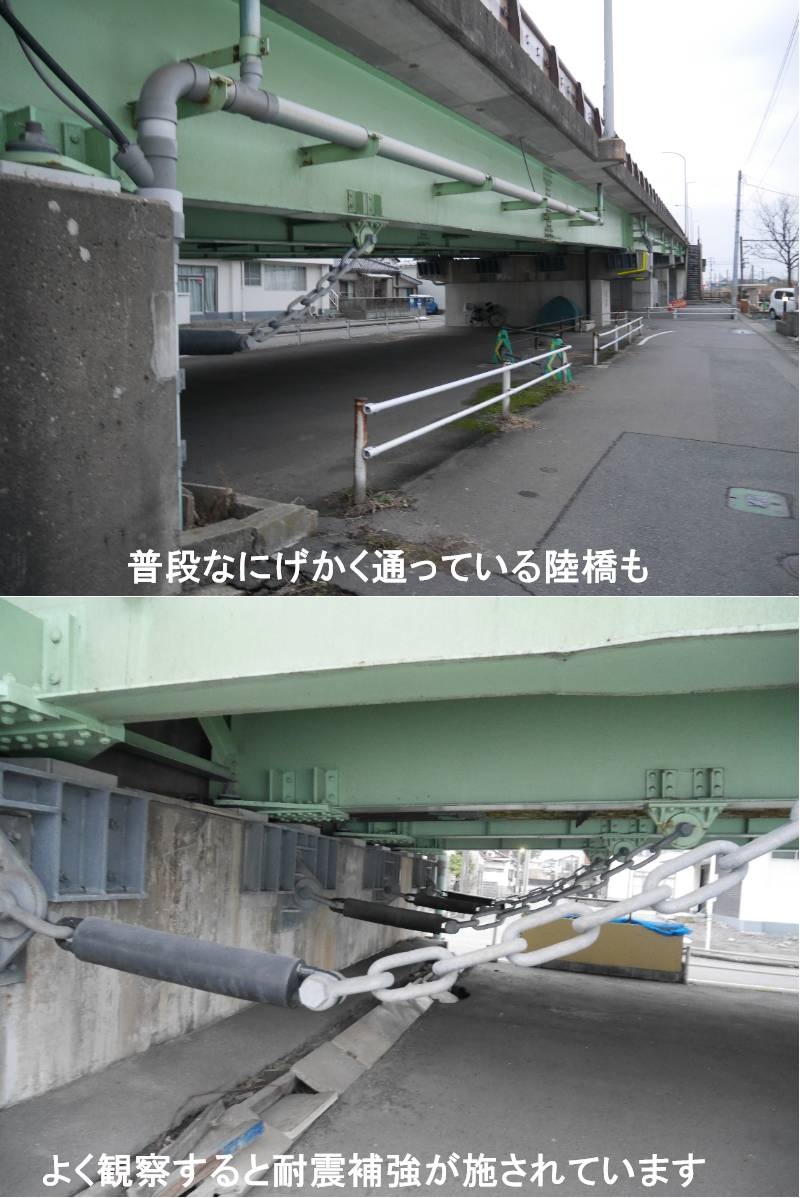 ウオーキングであまり気にしないで陸橋の下を通っていましたが、良く見てみると耐震補強がなされているのが解ります。橋の落橋防止装置は、地震時に橋桁が橋脚から脱落するのを防ぐ耐震・安全装置です。ケーブルやチェーン、鋼製ブラケットで桁同士や橋脚と連結し、水平方向の移動を制限して落橋を防ぐフェールセーフ機能です。阪神・淡路大震災以降の基準改定で必須化され、既存橋梁の補強でも多く採用されています。ケーブル・チェーン連結方式は、橋桁と橋脚(または橋台)、または桁同士をPC鋼より線やチェーンでつなぎ、変位を拘束します。https://www.ji3.biz