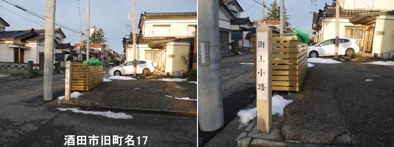 酒田地区広域行政組合消防署みなと分署の南側(酒田港側)に標柱があります。酒田市の「旧上小路」とは、かつて酒田の町にあった重要な小路の一つで、「上荒町と上喜元の間、船場町までを結ぶ道」を指し、港に近く廻船問屋も置かれ、「猟師町東小路」とも呼ばれ、船場町へ下る急な坂は「上小路坂」と呼ばれていました。東西は鶴岡街道(国道7号線の一部)とつながり、船場町へ下る上小路坂は急勾配で、北前船の船乗りも通る交通の要所でした。この小路には、大規模な町屋として知られる橋本家住宅(酒田酒造)など、往時の酒田の繁栄を伝える建物が残っていました。現在は「上小路」という地名は使われていませんが、当時の面影を残す小路や、その歴史は酒田の文化財や資料館で学ぶことができます。