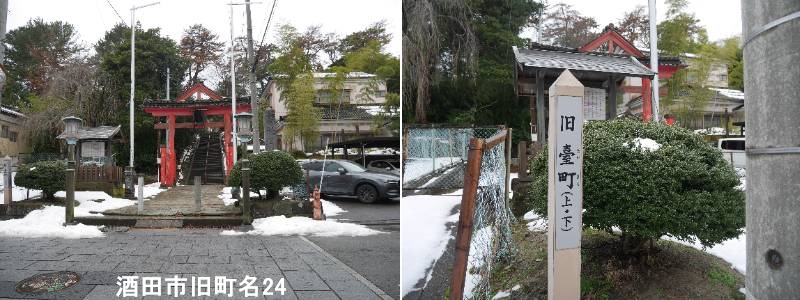 上本町の稲荷神社の舞うに標柱があります。西側にのみ家があったことに由来しています。土蔵、新井田蔵などがありましたた。酒田市の旧片町は、かつて酒田湊の商業発展とともに栄えた歴史ある旧町名の一つで、現在の住居表示が実施される1960年代まで使われていた地名であり、主に酒田商業学校(現・総合文化センター周辺)があった場所を示し、湊町の賑わいを伝える重要な場所でした。 江戸時代から続く酒田三町(酒田町、内町、米屋町)の成立以降に発展し、明治から昭和初期にかけて「片町」の地名で親しまれました。1917年(大正6年)には町立乙種商業学校(後の酒田商業学校)が設立されるなど、商業教育の中心地でもありました。つまり、旧片町は、現在の酒田市が湊町として発展した歴史を物語る、「懐かしい酒田の旧町名」の一つなのです。