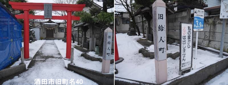 幸町2丁目の光徳稲荷神社の前に標柱があります。酒田市の「旧給人町」とは、最上方面から来た与力や給人といった役人が住んでいた地域に由来する、酒田の古い町名で、江戸時代から明治時代にかけて存在し、明治時代以降の区画整理や住居表示の変更で現在の町名に変わりましたが、その歴史と面影を伝える重要な地名です。特に、本間家の下屋敷や大庄屋の屋敷があり、静かで格式の高い地域として知られていました。「給人」は江戸時代の役職名で、この地域に住んでいた与力・給人といった役人にちなんで名付けられました。大庄屋であった尾形家屋敷や、本間家の屋敷(下屋敷)もこの地にあり、格式の高い場所だったことがうかがえます。つまり、「旧給人町」は、酒田の湊町としての発展の中で、役人たちが暮らした歴史的な地区を指す言葉であり、現在の住所表示には残っていなくても、その地域の歴史を語る上で重要な旧町名なのです。