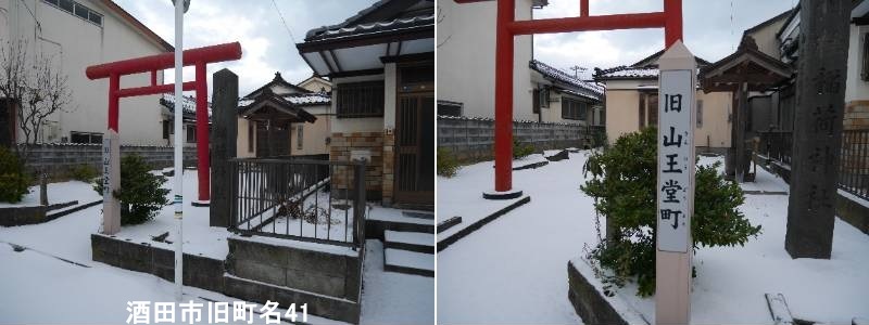 本町一丁目の稲荷神社の入口近くに標柱があります。酒田市旧稲荷小路とは、かつて「竜徳稲荷神社」を中心に発展した地域の名称で、その神社の名前から名付けられました。現在も船玉大明神塔(船の守り神)などが残る歴史的な小路(細い道)で、港町・酒田の信仰と暮らしを今に伝える場所です。 猟師たちが海上安全と大漁を祈願して稲荷神社を勧請したのが始まりで、神社を中心に町が栄え、「稲荷小路」と呼ばれるようになりました。稲荷神社は商売繁盛、五穀豊穣、開運出世の神として、また船玉大明神は船の守り神として、酒田の港町文化と深く結びついています。「船玉大明神塔」は船の形をした台座を持ち、船主が船の帆柱に神を納めて祀った「船玉」信仰(船魂信仰)の象徴です。酒田市内には多くの「小路」があり、この稲荷小路もその一つで、古い地図でその名が確認できる歴史的な地名・小路名です。