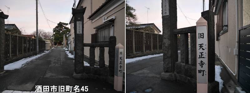 相生町一丁目の天正寺入口に標柱があります。酒田市旧天正寺町とは、昭和30年代まで存在した酒田の旧町名の一つで、現在の一番町や相生町一丁目にあたる地域を指します。かつては寺町(現在の中町など)の西側に位置し、天正寺(鶏足山)や日枝神社など歴史的な名所も多く、大火後の道路拡幅などで「天正寺町通り」として親しまれていました。酒田の古い町名(旧町名)の一つで、江戸時代から続く酒田三町(酒田町・内町・米屋町)の流れを汲む地域です。「天正寺町通り」は、大火後に道路が拡幅された際に「天正寺町」という地名が使われ、当時の賑わいを示す場所でした。要するに、かつて「天正寺町」と呼ばれていた場所が、現在の「一番町」「相生町一丁目」といった地名に変わった、という歴史的な呼称が「旧天正寺町」です。