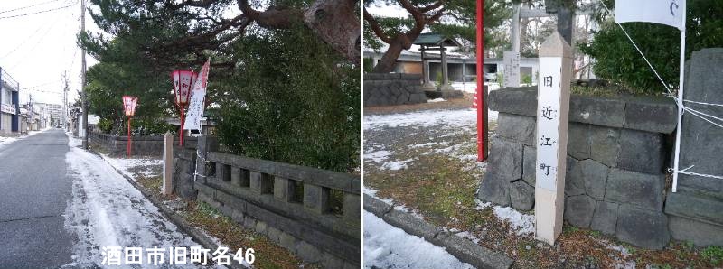本町一丁目の秋葉神社の門前に標柱があります。酒田市の旧肴町とは、現在「肴町」という地名が残る、かつての酒田湊の賑わいと歴史を伝える酒田三町(酒田町・内町・米屋町)の一つで、明治・大正期には商業や漁業で栄えた湊町の中心的なエリアで、新住居表示(住所表示の変更)によって現在の地名に変わりましたが、旧町名保存運動などでその歴史が語り継がれている、酒田の湊町文化の重要な一部です。最上川の河口に位置し、酒田湊の発展とともに商業が栄え、特に魚市場(肴市場)があったことから「肴町」と名付けられたと言われています。酒田のメインストリートである本町通りに面し、賑わいの中心地でした。つまり、酒田市旧肴町は、現在の住所表示では「肴町」周辺に該当する、酒田湊の商業と文化の中心地だった歴史的なエリアを指す言葉です。