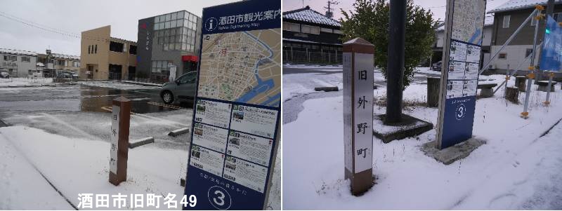 浜町通りの料理店「こい勢」の近くに標柱があります。」酒田市の旧外野町は、かつて酒田のはずれ(外れ)にあったことから「外野町」と呼ばれ、昭和24年頃に「戸野町(とのまち)」に改称された旧町名で、現在の戸野町やその周辺地域を指し、本間家ゆかりの地や、昭和30年代の住居表示実施まで使われた歴史ある地名です。「外野町」時代: 酒田が形成された当初、最上川南岸の砂山の上に作られた、酒田の「外れ」にあった町だったため「外野町」と名付けられました。昭和24年(1949年)頃に「戸野町」に改められましたが、その理由は地元で明確な記録が少なく不明な点が多いです。本間光丘が植林(明蕉)を行い、砂を防いだことから「戸野」の地名につながったという説もあります。