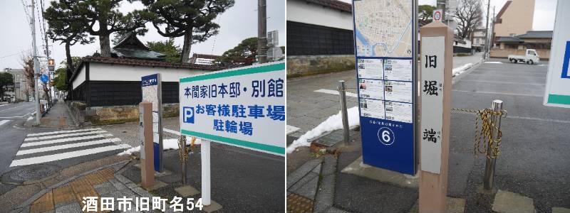 旧本間邸の横に標柱があります。本間家旧本邸東側の通りです。本町と鍛冶町の中間辺りから東の新井田川と肴町を通し、新井田川下流へと通じる亀ヶ畸城の外堀がありました。古くは西側にのみ家かおり「片平町」とも呼ばれていました。元禄9年絵図では「鍛冶町横小路」といわれ、慶長四年(1599)東禅寺城主志田義秀(しだよしひで)は関ヶ原戦に備えて鵜渡川原(うどがわら)と旧内町組の一部を堀と土塁で囲いました。その内、鍛治町から本間家本邸東側にかけての所を特に堀端と称し大欅が並び美観を呈していましたが、明治二年埋立てられました。
