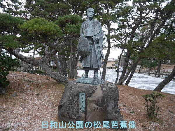 港方面から出町方向の日和山の登り口に標柱があります。酒田市の芭蕉坂は、松尾芭蕉が酒田に上陸後、入ったとされる道筋にある坂道です。松尾芭蕉は『奥の細道』の旅で酒田を訪れ、庄内藩のお抱え医師不玉宅に滞在し、多くの名句を残しました。特に日和山からの夕景の句や、豪商・近江屋(玉志)宅での句会が有名で、日和山公園には芭蕉像と句碑があり、不玉宅跡には記念碑が建っています。「暑き日を海に入れたり最上川」:酒田で最初に詠んだ句。安種亭(安種亭令道宅跡)で詠まれました。「あつみ山や吹浦かけて夕すずみ」:不玉宅での歌仙で詠んだ発句。日和山公園の句碑にも刻まれています。庄内藩のお抱え医師・不玉や、豪商・近江屋(玉志)らと交流し、句会を開くなど親交を深めました。酒田は『奥の細道』の旅の中でも特に重要な滞在地であり、当時の豪商文化が芭蕉をもてなしたことがうかがえます。