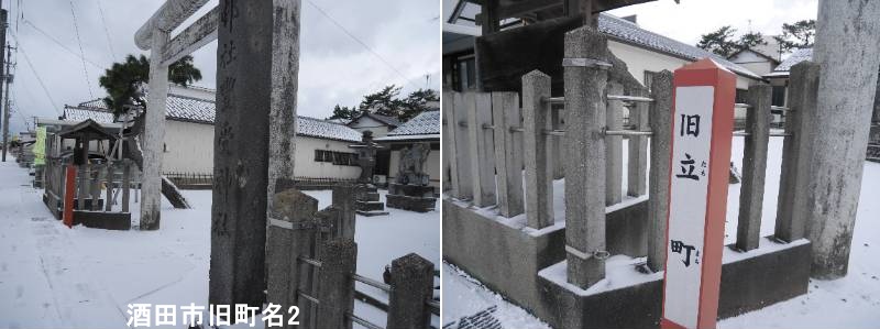 千石町二丁目豊受神社の近くに標柱があります。酒田市の旧立町は、かつて酒田の湊町として栄えた時期に存在した「酒田町」「内町」「米屋町」といった旧来の町名の一つで、特に商人町として発展した地域の中心部(本町通り周辺)を指し、新住居表示実施に伴い現在の町名に再編されるまで使われていた地名です。これらの旧町名は、最上川と新井田川に挟まれた中洲に形成され、酒田の繁栄を物語る歴史的な小路や地名が今も残されています。最上川と新井田川の合流点付近に位置し、河岸八丁(新井田川沿いの町々)や本町通り(大町など)は、酒田の商業・海運の要衝として栄えました。つまり、「旧立町」とは、酒田の古い町名が使われていた時代(昭和30年代まで)の、特に湊町の中心部を指す言葉であり、現在の酒田市の街並みの歴史的なルーツを示しています。