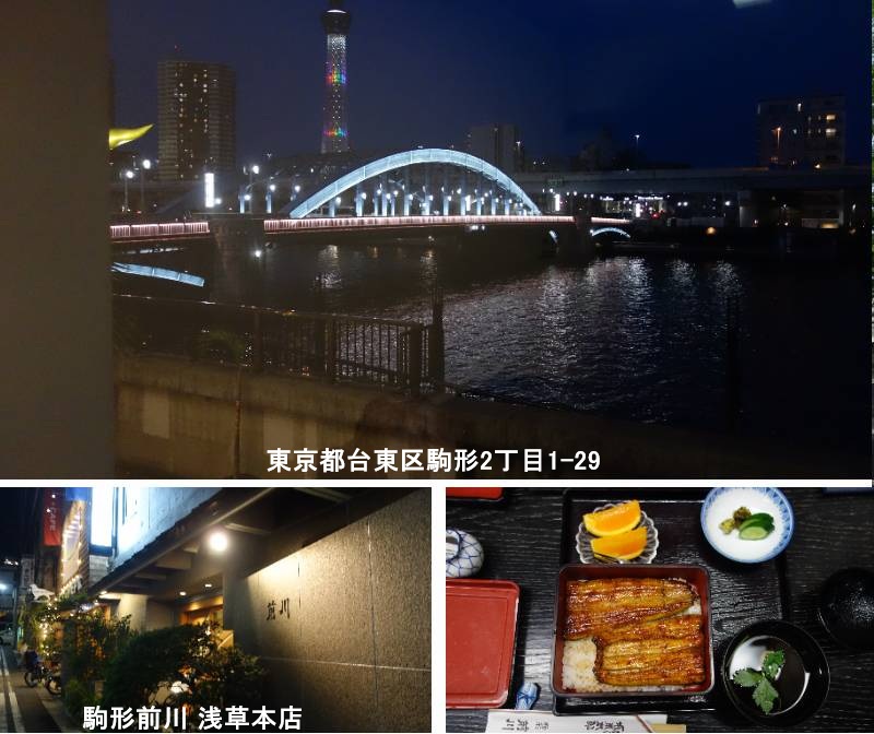文豪にも愛された創業220年の特製タレでいただく蒲焼が人気の【鰻 駒形前川 浅草本店】でディナーをしました。鰻は天然に限りなく近いと言われている国産の「高級養殖鰻」だそうです。ふっくらやわらかで、口の中でとろける脂が特徴、泥臭さが全くないため『白焼き』もそのまま焼くだけでご提供でとても美味しいうなぎでした。。席は2~4階で全てテーブル席で、大きな窓からは隅田川と東京スカイツリーを眺めることができ、昼間は下町情緒を、夜は東京の夜景をお楽しめます。