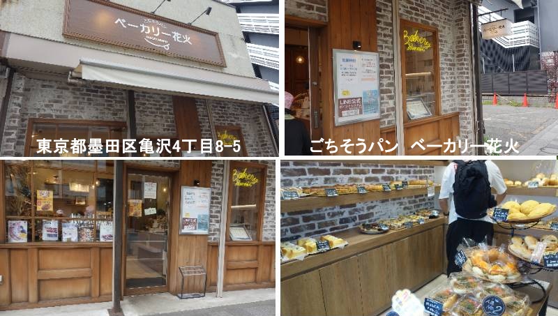 美味しいパン屋さんのテレビ放送をかみさんが見て、行ってみたいとの事で出かけました。コロナ禍を機に墨田区の老舗パン屋 かめぱん で修行され、別事業としてパン屋 ごちそうパン ベーカリー花火 を2022年にオープンされました。店主の神作さんは様々な料理コンテストで入賞経験があるとのことです。店名に ごちそうパン と謳っているだけあって、シンプルなパンは少なく、アレンジしたパンが多い印象です。JR錦糸町駅から北斎通りを両国方面に真っ直ぐ9分程歩くと、レンガ調の素敵なお店が現れます。男性が入りやすいように間口の大きなガラス窓をつけて、外から覗くことができるようにしているそうです。