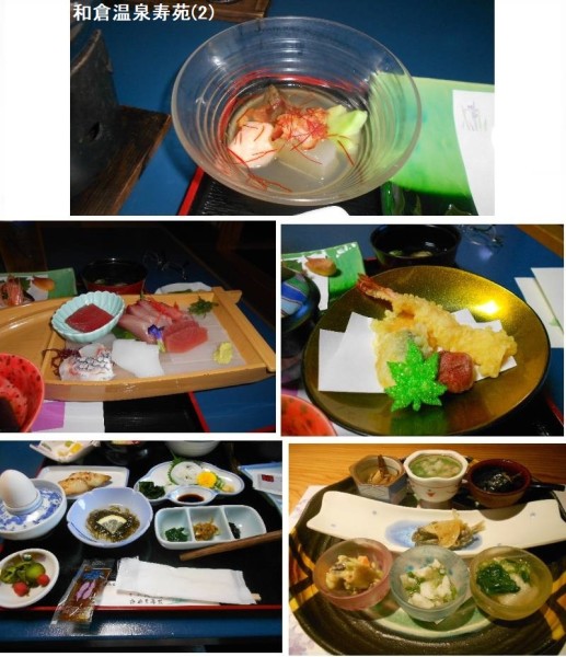 和倉温泉は、和倉温泉駅からバスで約5分、能登半島最大の観光地に位置する温泉地です。開湯1200年とされる歴史の古い温泉は国内では珍しい海から湧き出る塩分が豊富な湯が特徴です。青くきらめく七尾湾を見渡す海岸沿いに、大型和風旅館が立ち並んでいます。温泉街の中央にある弁天崎源泉公園からは、穏やかな波の上に架かる能登島大橋、真っ赤な夕日を浴びて鮮やかさを増す和倉港の絶景を一望できます。日没を迎えると、弁天崎源泉公園をはじめ渡月橋や湯元広場など温泉街の各所にライトアップが施され、闇夜をより一層きらびやかに、艶やかに照らし出します。夏には有名な「和倉温泉夏花火」を開催しています。開くと直径は約650mにも達する30号玉(3尺玉)が名物となっています。寿苑は、全客室、大浴場ともに波静かな七尾湾に面したオーシャンビューの和風旅館です。新進気鋭の若手料理長が腕を振るう料理は、料理百選にも選ばれるなど旅館としても数多くの受賞実績があります。