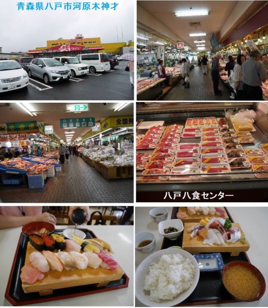 八戸市むつ湊地区の商業者有志を募り、新天地に新しいタイプの店舗集団「八食センター」がオープンしました。 港町八戸という立地を活かして、鮮魚や塩干珍味など新鮮でおいしい水産品を中心に、青果・精肉・お菓子・一般食品を広く品揃えする全国的にもあまり例を見ない郊外型食品市場として話題となっています。八戸港で水揚げされたばかりの新鮮な魚介類や生鮮野菜、県南地方の物産やおみやげなどがそろう巨大市場。 全長170mのビッグストリートに、約60店舗が軒を連ねています。 館内には「厨スタジアム」と「味横丁」2つの飲食街があり、市場で買った魚介類や食材を七厘で焼いて食べる「七厘村」も人気のスペースです。全長170メートルに約60店舗が並び、水揚げされたばかりの新鮮な魚介類・青果・精肉、乾物や珍味・お菓子・お酒・日用雑貨まで幅広く取り揃え、お土産をはじめとした八戸の名物がすべて揃います。 特に鮮魚店には毎朝獲れたての新鮮な魚介類がたくさん並び、旬の鮮魚をはじめ、干物や捌きたてのお刺身から珍しい魚貝類まで種類も豊富です。