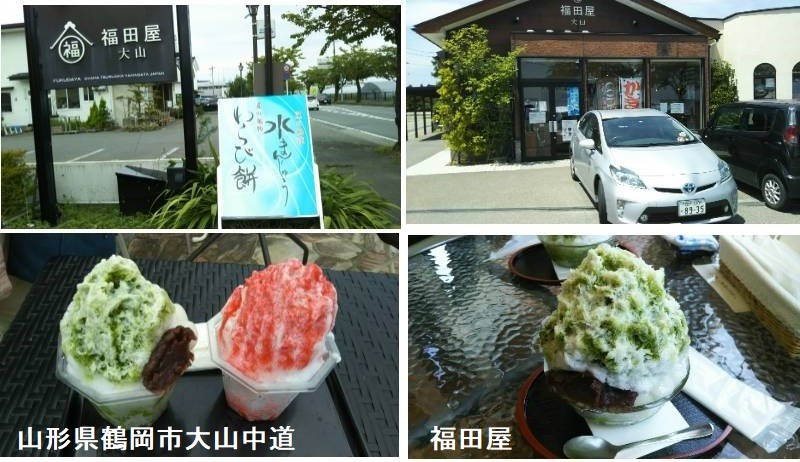 JR羽越本線の羽前大山駅から車で5分。鶴岡駅からは車で15分ほどの場所にある「旬菓処福田屋」は、明治初期には40軒もの造り酒屋が建ち並んでいたとされる大山エリアにお店を構え、夏には大人気のかき氷で行列ができるお店です。明治37年に創業いたしました福田屋は、現在4代目が店主を勤める老舗菓子店として、老舗ならではの伝統の技を活かした上生菓子や銘菓「芋ようかん」をはじめ和菓子と地元大山ならではの酒ゼリーなど、個性的でバラエティに富んだお菓子を取り揃えております。かき氷は、自家製シロップに厳選した北海道産の小豆を炊いてご提供。どこか懐かしい味わいと、ふわふわの軽い触感を求め行列ができる日もございます。イートインおよびテイクアウトでもご提供しております。