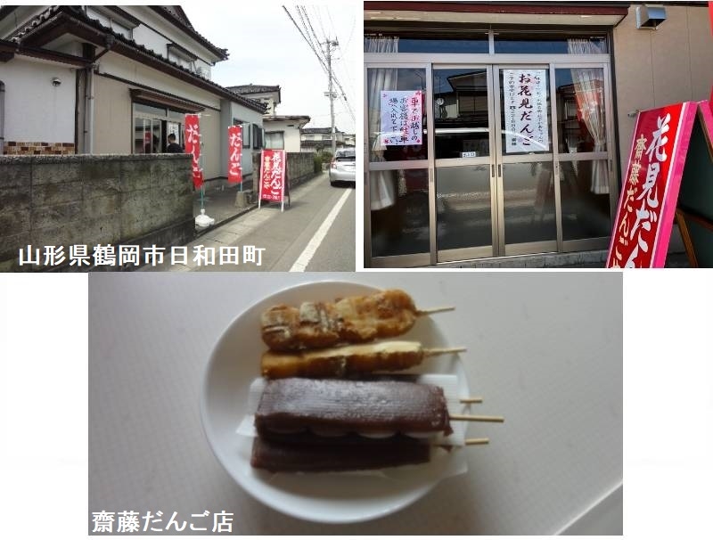 桜の花の咲く頃、城下町鶴岡に限定営業するお団子屋さんが開店します。「お花見」と言えば「松ノ木橋のお花見だんご」と、なるほど市民には愛される風物詩です。4月の初旬~5月の初旬 しか営業しない幻のお団子を今年も「齋藤だんご屋」さんから購入して お家でいただきます。鶴岡駅からの一つ目の信号を道なりに西進する事約960m 徒歩だと およそ12分じゃくの鶴岡市日和田町(踏切を越えると残り約120m)です。県道R332号からだと県立鶴岡中央高校の交差点を南進グラウンドと畑を右手に眺めながら進み青龍寺川に架かる松の木橋を渡ったすぐ先!すぐそばに流れる青龍寺川に掛かる橋「松ノ木橋」のそばでお団子を提供するので、鶴岡市民には「松ノ木橋のお花見団子」の愛称で呼ばれるようになったんです。
