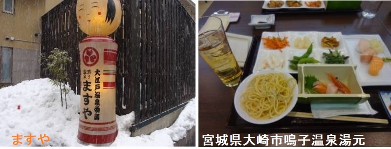 鳴子温泉は宮城県の最北端にあり、鳴子温泉郷(鳴子・東鳴子・川渡・中山平・鬼首)の5つの温泉地の中の一つです。温泉の泉質は多彩で、種類の豊富さ・源泉数の多さは日本有数です。歴史は古く、「続日本後記」に承和4年(837年)4月に潟山が大爆発をして温泉が湧き出したとあり、温泉宿の開湯は江戸時代中期頃と伝えられて、湯治場として多くの人々に親しまれました。また、江戸時代後期には木地師たちがろくろを使って作製した「鳴子こけし」をお土産や玩具として広めました。その木地技術と共に発展してきた漆工芸品の「鳴子漆器」も有名です。「ますや」は、四季を彩る鳴子を最上階の大浴場・露天風呂から見下ろすことが出来ます。男性風呂は鳴子の町並み、女性風呂は季節ごとに変わる山々を間近で楽しめる当館自慢の大浴場です。