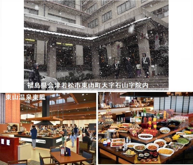 会津の奥座敷・東山温泉は、天平年間(729~749)に行基菩薩が発見したと伝えられ、奥羽三楽郷の一つに数えられる歴史ある名湯です。江戸時代には、会津藩の湯治場として栄え、会津若松の奥座敷として発展しました。会津民謡「会津磐梯山」に登場する小原庄助ゆかりの温泉といわれています。歴史に名を残す豊臣秀吉、新撰組副長・土方歳三、白虎隊、横光利一、山川捨松、齋藤一、三島通庸をはじめとして、伊藤博文、与謝野晶子、竹久夢路などもこの地を訪れています。湯川の両側に旅館が立ち並び、温泉情緒も豊かで、会津観光の基地として最適です。御宿東鳳は東山温泉の玄関口に建つ温泉宿で、会津若松市内を見下ろす高台に位置しています。浴室は左手にある朱雀亭と右手にあるタワー館の両方にあります。棚雲の湯は、まるで宙に浮いたような大絶景の露天風呂で、非日常感にどっぷり浸ることができます。