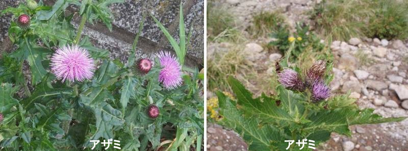 アザミの仲間で最も多く栽培されているのはノアザミで、切り花用の「ドイツアザミ」はノアザミの改良種です。ノアザミは、日本列島の海岸沿いからやや高い山の、日当たりのよい草原や道端に生えています。そのほか中国東部、台湾にも分布します。きわめて花の時期が長く、春から秋にかけて開花します。花は直径3cmで、茎の先端に上向きに1~3輪つき、総苞が粘ることや、根元の葉は開花時には枯れているのが特徴です。分布域が広いだけあって各地にさまざまな亜種や変種が見られ、その土地のほかのアザミと交雑して雑種をつくっていることもしばしばです。アザミの仲間は世界におよそ300種あります。日本にはそのうちの1/3が集中しており、大部分が日本列島の特産で多くは限られた地域にのみ見られます。日本列島全土の亜熱帯の海岸から亜高山帯まで、また湿地帯や崩壊地、森林など、さまざまな場所のいろいろな環境に生えています。アザミの仲間は種類の識別が難しいことで知られています。識別するには花の大きさ、つき方、総苞の形、総苞片の形とつき方、開花期に根元の葉(根出葉)の有無などを確認することが必要です。