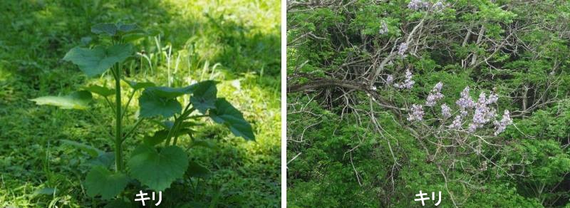 桐(キリ)はゴマノハグサ科キリ属の広葉樹です。成長が早く、短期間で木材が得られる樹種です。早生で花も美しいので海外でも園芸樹として植栽されています。 桐(キリ)は日本では最も軽い(密度が低い)木で、断熱性及び調湿性(防湿効果)に優れ、同時に収縮・膨潤率が低く木材としての狂いが小さいことも特徴です。日本の木製家具の中でも、特に桐(キリ)の箪笥は優れた家具といえます。現在も桐材は、神社、寺院、宮廷の儀式で歌や舞に用いられる琴や箏として使われ続けています。また、桐は紋章として、皇室や日本国、貨幣の装飾などに使われています。かつて日本では女の子が生まれたら、キリの木を植える習慣がありました。将来、娘が嫁ぐとき、娘とともに大きく育ったキリの木でタンスにして持たせてあげるためです。キリの成長のサイクルと人間の成長のサイクルが適合することを先人は知っていたのでしょう。将来を見通して、育てて、使うという日本人の美しい習慣です。