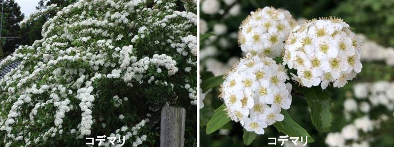 コデマリは、細い枝や葉が見えなくなるほど白い多数の花を咲かせ、枝垂れる姿がとても見事で、庭木や切り花として利用される、春を代表する花木です。同じ仲間のユキヤナギよりも遅く、赤褐色の新梢が伸びたあと、4月から5月に開花します。コデマリの属するシモツケ属は、シモツケやユキヤナギなど、小型で丈夫な育てやすい観賞価値の高い花木が含まれる重要なグループで、北半球の温帯に100種ほどが分布します。コデマリは古く中国から渡来し、江戸時代初期から観賞用に栽培されてきました。和名は花の集まり(花序)を、小型の手まりに見立てたものです。4~5月頃、枝垂れた枝に沿って手毬状の白い花をたくさんつけます。葉の色はやや青みがかり、株から立ち上がった枝は上部で放射状に広がるので、柔らかい印象になります。性質は強健で、適度な湿り気のある水はけの良い土壌が理想的です。剪定は枝先を詰めず、古くなった枝や小枝を下部から切り取って間引くようにすると樹形が乱れません。冬期に緩効性の肥料や堆肥などを根まわりに鋤き込むと病気になりにくいです。
