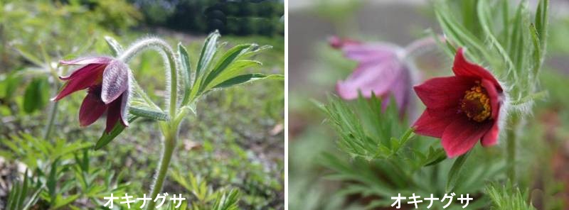 オキナグサは本州、四国、九州の日当たりのよい草原や林縁に生える多年草です。花後にできるタネに白く長い毛があり、そのタネが密集して風にそよぐ姿を老人の白髪に見立てて「オキナグサ(翁草)」と呼ばれているといわれます。地下には太いゴボウ根状の根茎があり、春に暖かい日ざしが注ぐと芽を出します。葉を開くと同時に白い毛で覆われた花芽を伸ばし、葉の伸びきる前に、短い毛で覆われた赤紫色の花を下向きに咲かせます。花弁に見えるものは萼片です。この花が数輪咲いた姿はとても情緒があり、タネの姿と相まって愛好家が多い理由もうなずけます。庭植えにすると、より風情や情緒が楽しめるでしょう。花後に葉の展開が終わると、花茎が長く伸びて、先端にタネを実らせます。あとから開花した茎の成長が止まると、葉はほとんど出ることもなく夏を迎えますが、わきにはしっかりと側芽をつけており、秋には株を充実させます。やがて落葉して休眠に入ります。