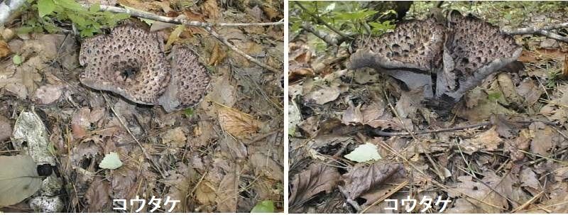 初めコウタケは香茸だと思うほど香りが強いです。ところが本当は皮茸だとか。事実,信州などでは今でもカワタケと呼んでいます。姿を獣の毛皮に見立てたと云いますが,それはささくれたった傘の表面なのか,一面針を密生させた傘裏を指しているのだろうか。本種をゆでるとビックリします。ゆであがっだ傘裏が濡れねずみに似ています。皮茸の名の由来が納得できます。本種の地方名は,シシタケ,クマタケ,イノハナなど,獣にちなんだものをはじめ数多いです。それほど,この大形で荒々しい姿のきのこは山村の人たちに人気が高く,秋,山里の農家の軒下に本種が干されているのをよく見かけます。コウタケは広葉樹林内に群生し,傘は10~25cm,中心の穴は柄の根元にまで達し,傘裏は一面の針で強い芳香があります。なお,ケロウジなど本種に似て下面が針で,食べられない小形のきのこが何種かあります。煮ると黒汁が出ますが,味,歯切れはよく,おろし和え,炒めもの,煮もの,天ぷら,きのこ飯などがおいしいです。