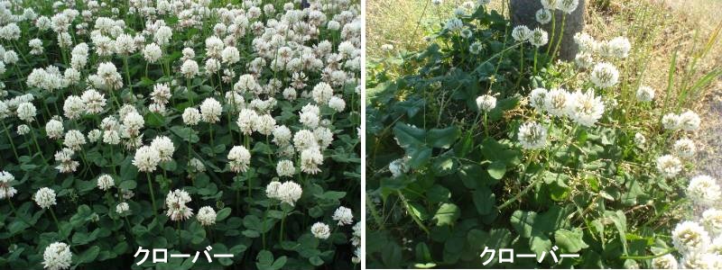 クローバーとは、マメ科トリフォリウム(シャジクソウ)属の総称です。日本でクローバーの代表種のように愛されているのは、シロツメクサという種類です。クローバーはヨーロッパ原産で、日本に渡来したのは江戸時代だといわれています。輸入船の荷物の隙間に緩衝材として詰められていたのがきっかけで日本に根付き、広まっていったとのこと。そのため名前も白詰草(シロツメクサ)となりました。クローバーは他のマメ科の植物同様、根に根粒菌を持っているので土壌を肥沃にします。他にも牧草や蜜源として利用されてきました。シロツメクサは、日本中でもっとも多く見られるクローバーです。河原や空地、公園、その他多くの日当たりの良い場所で見かけます。と花茎を立ち上がらせて、ウサギのしっぽのような球状の白い花を咲かせます。葉は通常3枚の小葉がひとつに集まったような形状をしていますが、稀に四葉のクローバーとして人気がある、4枚の葉のものがあります。さらにもっと稀に5枚の葉や6枚の葉もあります。シロツメクサの中には、変種でピンク色の花を咲かせる品種があります。