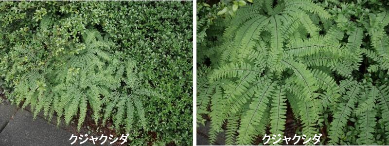 が次々に分かれて葉をつけ、鳥のクジャクが尾羽を広げたような形であることからその名が付きましたた。茎は地中にあって横にのび、わずかに鱗片(シダ類の茎や葉柄の表面にみられるうろこ状の構造)