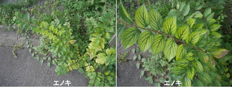 本州から九州までの山野に生える在来種です。昔から普通に見られ、現在それほど減る傾向にはないようです。枝が多いため、また機具の柄を作るため、エノキと名付けられたらしいです。エノキを現す榎は夏に樹陰が好まれることから作られた和字といわれています。昔は一里(4km)毎に一里塚が作られ、そこにエノキが目印として植えられたといわれていました。日本の国蝶オオムラサキはエノキの葉に産卵し、幼虫はその葉を食べて成長します。果実は食べられます。幹の高さは約20mにも達します。葉は長さ4~9cmで、枝に互い違いに付き、雌雄同株であり、同じ株に雄花と雌花を付け3ます。花は小さく目立ちません。ムクノキに似ていますが、葉脈はムクノキより少なく、幹にはムクノキの場合薄い縦縞があるのに対し、エノキの場合薄い横縞があります。