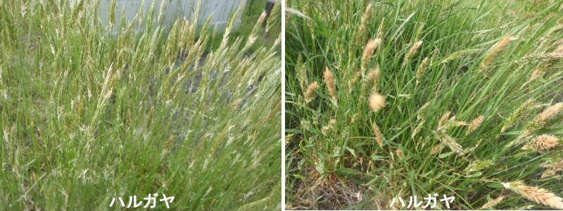 ハルガヤとはスイートバーナルグラス(SVG)で原産地はヨーロッパです。イネ科の多年生植物で、北海道には明治から牧草として導入され野生化した草種です。草丈は20~60cm、乾燥するとクマリンの香りを発します。出穂・開花が著しく早く、種子と地下茎で増殖します。ハルガヤの被害実態は石狩、後志、空知や上川、留萌、宗谷およびオホーツク北部で特にハルガヤ優占草地が多く、オホーツク・十勝・根釧の一部で侵入が認められています。被害が多い地域では、ハルガヤ被度40%以上の草地が複数確認されています。ハルガヤは 5 月始から 7 月上旬頃まで長期にわたり出穂します。出穂後10日前後で開花します。開花4 週後には発芽能力を有する種子を生産します。種子生産時期は 6 月始と早く、種子量は10万粒/平方メートルと非常に多い種子を生産します。ハルガヤの生育特性を理解し、種子を落とさない圃場管理方法を検討しました。ハルガヤは桜餅の香りがします。 クマリンです。 乾燥すると香りが強くのなるのですが、そのままでも良く揉むと香りがします。 他にもシナガワハギなどにこの香りがあります。花粉の季節 イネ科の植物にはカモガヤやオオアワガエリの他、ハルガヤやホソムギなどがありますが、ほぼ同じ時期に飛散します。 4月下旬から飛散し始め、7月上旬にいったん終息し、再び8月下旬から9月下旬まで飛散します。