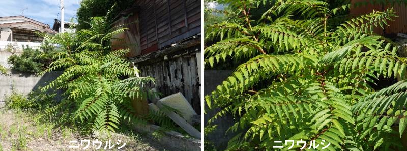 ニワウルシは、ニガキ科の落葉高木で、別名、シンジュと云い、和名に「ウルシ」がついていますが、ウルシ(ウルシ科)とは全くの別種です。ウルシのようにかぶれる心配はないです。ニワウルシの和名は、ウルシに似ていますが、かぶれないので庭に植えられることからついた名前です。シンジュは英語名称の ツリー・オブ・ヘヴン(天国の木)、ドイツ語名称のゲッターバウム(神の木)の和訳によるものです。このように西欧の言語では、ニワウルシの木の高さや成長の早さを強調する名前が付けられています。中国原産で、中国名は臭椿とよばれています。臭椿は、木を折ったり葉を揉むと、独特の悪臭がすることに由来します。フランスでは誤って「日本のウルシ」と命名されたが、のちに「日本のウルシもどき」と修正され、今日に至っています。