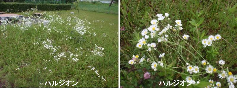 4月に入ると、春の花が順番を待たずに一斉に咲き出ました。その中の一つ、キク科の帰化植物「ハルシオン」があります。ハルシオンはアメリカ原産で、大正時代に園芸植物として入ってきました。当時は「ピンク・フリーペイン」というモダンな名前がつけられて、花屋の店先にさっそうとデビューしました。いつの世も同じで、たちまち新しもの好きな日本人に大人気を博しました。しかし、次から次へと新しい花が移入されると、いつしかハルシオンは忘れ去られ、店の隅へ、そして屋外へと追い出されてしまい、周辺の空き地に大繁殖し、「貧乏草」という名に落ちぶれてしまいました。さらに追い打ちをかけられ害草としての迫害を受け、除草剤による駆除対象となりました。それでもハルシオンは、辛抱しながら除草剤の免疫をつけ、大正、昭和、平成の三つの時代を生き抜いています。ハルシオンによく似た植物に「ヒメジョオン」がありますが、ハルシオンの方が春から初夏にかけて咲きだし、茎は中空で、茎につく葉は茎を抱き、茎と葉には軟毛が多くはえています。ヒメジョオンは初夏から秋にかけて開花し、両種が対面するのは6月頃の約1ヵ月間になります。なおハルシオンは、「春紫苑」であって、「春ジョオン」ではなく、ヒメジョオンは「姫女苑」であって「姫シオン」ではありません。両種とも区内の明るい草地に多く見られます。