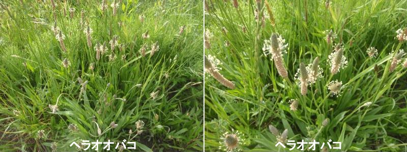 ヘラオオバコ(箆大葉子)は、ヨーロッパ原産の1年から多年草。持ち前の繁殖力と環境適応力で世界じゅうに広がっています。国内には江戸時代の終わりごろに渡来し、現在は全国各地の日当たりのよい場所でごく普通に見られます。乾燥にとても強く、幹線道路の路傍などにもたくさん生えています。株もとから細長い葉を多数出します。葉はややねじれ、表面には毛が多く生えています。ロゼットの状態で越冬します。5月から8月頃、株もとから次々と花茎を立ち上げ、その先に長さ1センチメートルから2センチメートルほどの円柱形の花穂をつけます。花茎は50センチメートルくらいになります。花は下から上に向かって咲き進みます。最初雌しべが顔を出し、時間差で雄しべが顔を出します。花粉を風の力で運ぶ風媒花なので、花粉症の原因植物にもなっています。ヘラオオバコのうち特に大型になるものは、オオヘラオオバコと呼ばれます。オオヘラオオバコは葉の長さ25センチメートルから40センチメートル(典型株10センチメートルから20センチメートル)、花の穂の長さ4センチメートルから8センチメートル(典型株3センチメートルから4センチメートル)で、ヘラオオバコの変種に位置づけられています。ただヘラオオバコは生えている場所の環境に応じて株の大きさが変動するため、オオヘラオオバコをあえて呼び分ける必要はないかもしれません。