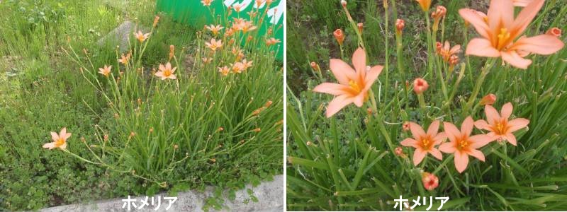 アルメリアはイソマツ科ハマカンザシ属に属する多年草です。ヨーロッパや北アフリカを原産としますが、様々な種類が存在し、自生する場所もさまざまです。 冬の寒さに当たることで開花する性質を持ち、寒さに強いのはもちろん、暑さにも強く丈夫であることが特徴です。一日花ですが、次から次へと咲き続けるので、長期間花を楽しむことができます。花色は朱、ピンク、黄、紫など。花の雰囲気は多様で、黄色い花弁の先にオレンジ色と緑の模様が入るH・エレガンスをはじめ、変化に富んでいます。南アフリカにおよそ30種が分布する球根植物です。秋に球根を植え付けると、春に花を咲かせます。球根のタイプは茎が肥大した球茎です。先端のとがった球形で直径1.5cm~2㎝くらい、表面は網目状の皮で覆われます。葉っぱは細長い鞭状や線形で、縦方向に筋が入ります。 茎は直立するか、ジグザグに伸びます。主な開花期は4月~5月です。花は一日でしぼんでしまいますが、一本の花茎に数輪が付き順番に咲くので、いくつか球根を植えていると一定期間は花を楽しめます。花は6つに大きく裂けた星形で、花色は黄、クリーム、ピンク、藤、朱などがあり、パステルカラーのものが多いです。黄色地に、赤と緑の模様が入るエレガンス種のようなカラフルな種も知られています。多くの種類が球根や葉にアルカロイドを含み、有毒であるとされています。名前は「会合する」という意味のギリシア語「ホメレオ(homereo)」に由来します。