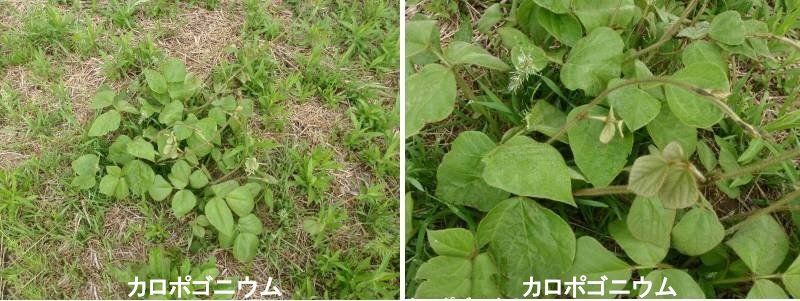 カロポゴニウム・カエルレウムはマメ科の蔓性多年草です。蔓長は最大数mとなり、年数を経ると基部は木質化し、湿り気のある土壌に接すると根を張ります。葉は、長さ15㎝程度葉柄の先につく三つ葉で、小葉は6~9cm、幅4~6cmの楕円形~卵形になります。小葉の上面には軟細毛があり、下面はビロード質の軟毛を持っています。開花時には葉腋から、長さ50cm程度までの総状花序をだし、鐘形の5裂片の萼と青~紫色の花冠からなる長さ1cm程度の筒状花を多数付けます。花後には、長さ4~8cm程度で、長楕円形~線形の莢果をつけ、内部に径4~5mm程度の球形で表面に光沢のある茶色の種子を持ちます。本種は、アメリカ大陸原種ですが、1940年代に東南アジアに導入されました。