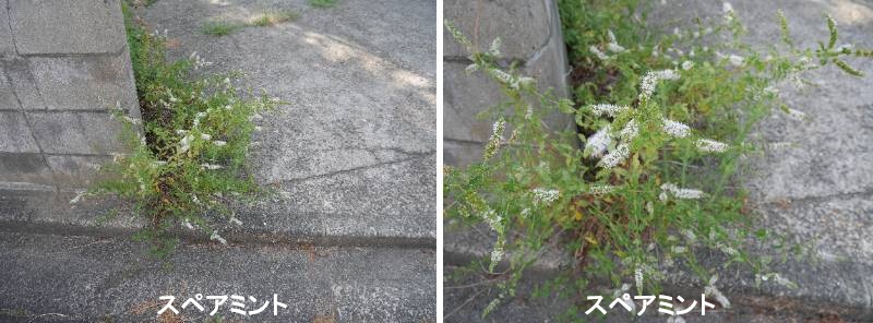 スペアミントは、ハッカ属の植物です。古くからハーブとして用いられています。ペパーミントよりもハーブとして用いられた歴史は古く、聖書でハッカとされている植物はスペアミントの一種ともされるナガバハッカとされています。なお、ペパーミントはスペアミントとウォーターミントの交配種とされています。地中海沿岸の原産で、ヨーロッパ各国やアメリカ合衆国のインディアナ州やミシガン州で栽培されています。日本でも北海道の北見地方で精油を目的とした栽培が行われています。多年生草本で、冬期は地上部が枯れるます。草丈30~60cm程度で、ペパーミントよりも低く、株は全体的に無毛です。葉は短い葉柄がついて対生し、葉身は槍の穂先のような形の長楕円形で、長さは5cm、葉縁にのこぎりの刃のような形の鋸歯があります。葉脈はペパーミントと比較するとあまりはっきりしません。花期は夏から秋にかけて(6~8月ごろ)で、茎の先端に長さ5cm程度の花穂を伸ばし、そこに白から淡紫色の花を多数つけます。花穂はペパーミントよりも細長く、不稔性であることが多く、地下茎により栄養繁殖します。