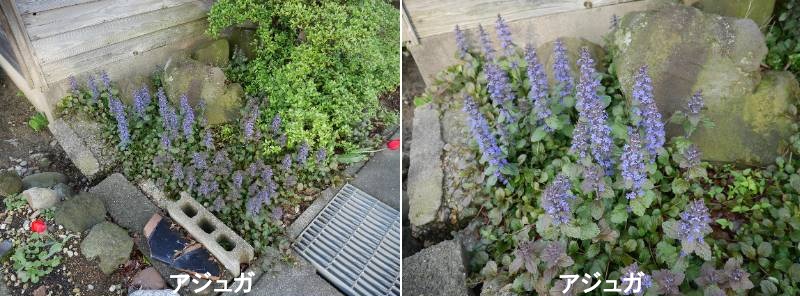 アジュガは世界に広く分布し、東アジアにもいくつか自生して春の野を彩ります。植物の見どころと見せ方 アジュガは、黒みを帯びたつややかな葉が美しく、地面につくように葉を密に茂らせます。ほふく茎を伸ばして子株をつくり、地面を覆うように横に広がるので、グラウンドカバープランツとして楽しめます。根は浅く張るため、樹木の株元近くなどの根が張って草花が育ちにくい場所でも楽しめ、より自然な景色ができあがります。 葉は常緑性なので、一年じゅう楽しめます。春にいっせいに立ち上げる花穂も、花つきがよく見ごとです。花色は、ブルーのほか、白やピンクもあります。銅葉は、落ち着きのある色なので、いっしょに植えた草花をより美しく見せてくれます。