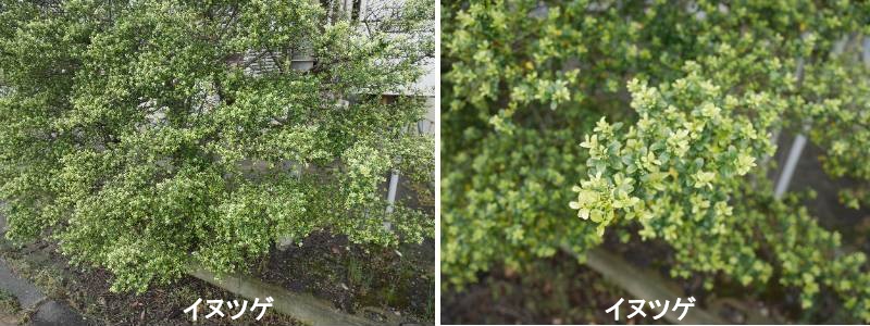 一般にはツゲと呼ばれているものはモチノキ科 の「イヌツゲ」を指すことが多いです。印鑑や櫛などの加工に用いられる高級材料のツゲ(ホンツゲ)に葉は似ているが、木材としてはやや劣るということでこの名がつけられました。しかし、庭木としては大気汚染にも強く、互生する葉は刈り込みによく耐えることから和洋を問わず庭木としてよく使われています。このイヌツゲは高さ5mぐらいになる常緑樹で、生け垣や玉物、玉の段づくりにトピアリーなど、さまざまな姿に仕立てられます。これほど樹勢が強く仕立てやすい木はないといっても過言ではありません。モチノキ科のイヌツゲは互生で葉の出る位置が一枚ずつずれています。やや楕円形または長楕円形(ちょうだえんけい)で、少し鋸葉があります。ツゲ科のツゲ属は「ホンツゲ」や「アサマツツゲ」と呼ばれます。イヌツゲとホンツゲはよく似ていますが、 ホンツゲの葉はイヌツゲに比べ、葉が向き合うように2枚の葉が出ている対生で丸いです。このホンツゲも花壇の縁取りや、刈込みに使われていますが、印材や櫛材にもなります。たいへん萌芽力が強いので、1~2年放任して乱れてしまった木でもつくり直しができるのが大きな特徴です。3~5年ほどすると樹形も完成するので、その後は3月から10月にかけ、年2~ 3回、刈り込みをしていくのが理想です。刈り込みは33~4月が適期ですが、あまり枝を伸ばさず、早め早めに新しく伸びた小枝を刈り込みばさみなどで刈るのがポイントです。また、枝に細い竹を添えたり、シュロ縄を使ったりして樹形をつくることもできます。