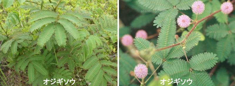 オジギソウは中央アメリカから南アメリカ原産の多年草で、非耐寒性で霜に当たると枯れるため、日本では春まき一年草として扱われています。オジギソウは学校の教材として育てた記憶のある人も多く、たいへん馴染み深い草花です。手を触れることで、普段動かない植物が、名前の通りお辞儀をするように動く様子はとても興味をそそられます。オジギソウの葉のつけ根には葉枕(ようちん)というふくらんだ部分があります。触れられるとその刺激で、葉枕の下側の水が一気に葉枕の上側に移動し、上側は膨張します。水がなくなった下側は収縮するため、その結果として葉が閉じて垂れ下がるのですが、元に戻るには10~20分くらいかかるようです。本葉が展開した小さな苗でさえも触れるとお辞儀をするのが何ともけなげです。ただし、触るという行為は植物にとってはストレスになるようなので、短時間に何度もむやみに触らないほうがよいかもしれません。オジギソウはこのように素早い運動をする植物として有名ですが、ピンク色のふわふわとしたポンポン状の花も可憐で魅力的で、単独でまとめて植えるとかわいい雰囲気になります。ピンク色の球状の部分は花序で、小さな花が多数集まっています。