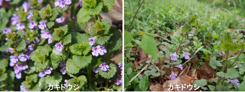 カキドオシはヨーロッパ及びアジア原産で、北米を含む世界各地の温帯地方に帰化しており、森の周辺や歩道わきや垣根の周辺に見られます。多年生の蔓性草本で、高さ15 cm程の茎は初め直立し、開花後、長い走出茎は伸びて地面を這い、垣根を通り抜けるほど伸長することから、「垣根通し」と呼ばれ、後に「垣通し」となりました。葉は腎臓形で葉縁に鈍い鋸歯がありますが、これを丸みを帯びた「銭」に見立て、葉が茎に連統してついていることから、別名の連銭草(れんせんそう)の名が付いたそうです。青紫色の花が輪生し、下唇に紅紫色の斑点を生じます。花期の茎や葉の生育が十分となる4~5月に株元から採取し、陰干しにしたものが生薬「連銭草(れんせんそう)」です。煎液は腎臓病や糖尿病、腎臓結石、膀胱結石、小児の疳に用います。湿疹には濃い煎じ液を患部に塗布します。また、カキドオシには胆汁分泌促進や血糖降下作用があり、胃炎や酸性消化不良などの消化器系疾患にも有効であると言われています。その他、カキドオシは壊血病の予防と強壮薬として用いられ、水虫やたむしには生の葉を何回も擦り込むと良いようです。上記の「小児の疳を取る」ことができることから、別名「疳取草(かんとりそう)」とも言われています