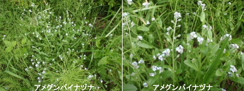 アメグンバイナヅナは、北アメリカ原産の1年から越年草で、国内では1910年に初めて神戸で採集されました。コウベナズナやセイヨウグンバイナズナの別名もあります。現在は世界じゅうに広がり、国内でも全国的に普通に見られる草となっています。茎は初めのうちはあまり枝分かれをせず、1本立ちするようにのびていきますが、花期が近づくと、上部のほうで次々と枝分かれをし、茎の先にナズナをコンパクトにしたような花と果実の穂をつけます。花期はふつう春から夏ですが、市街地や幹線道路沿いでは通年開花結実する傾向があります。果実は平べったい円形で、中心を貫く1本の縦線が目立ち、相撲の行事が使う軍配のように見えます。成熟すると、縦線の部分から2つに割れて、中から細かいタネがこぼれ落ちます。