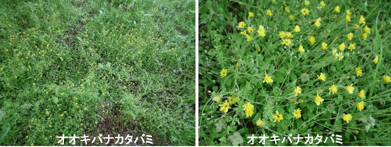 オオキバナカタバミは、カタバミ科カタバミ属の多年草です。南アフリカ原産で、現在では世界各地の温帯に帰化植物として定着しています。葉に紫褐色の斑点が多数見られることで他のカタバミと識別が可能です。春先に鮮やかな黄色の花を多数咲かせます。南アフリカ共和国のケープ地方原産で、観賞用として人為的に導入されたものが世界各地で逸出し、分布を拡大しています。日本では1890年代に観賞用に輸入されたものが野外に逸出し、1961年に鹿児島県で帰化状態にあることが確認されました。現在では、本州の関東地方・中央高地以南から九州まで広くみられます。地上茎はなく、地中に鱗茎を伸ばしその周囲に根がつきます。株元に長径5~8mmほどの長卵形の子鱗茎を多数つけ、この子鱗茎で栄養繁殖を行って増えます。葉はすべて根出し、葉柄は長さ15~20cm、その先端に幅1.5~2cmの倒心臓形の3小葉が円形につくカタバミ属特有の三出複葉を生じます。